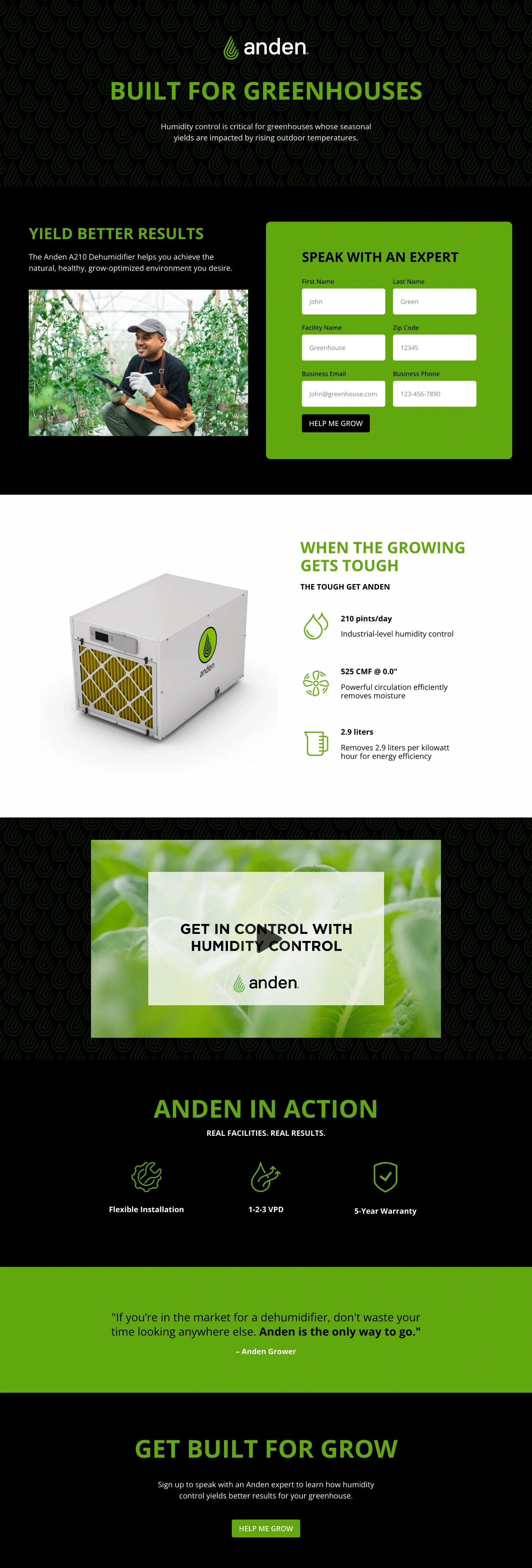 As Anden looked to expand beyond cannabis into broader indoor agriculture, we developed a smart, conversion-focused campaign to reach new growers. Using AI-driven landing pages that automatically optimized based on ad engagement, I led the team in crafting the copy, content, trigger emails, and user pathways designed to capture leads and position Anden as a trusted name in controlled environment agriculture.